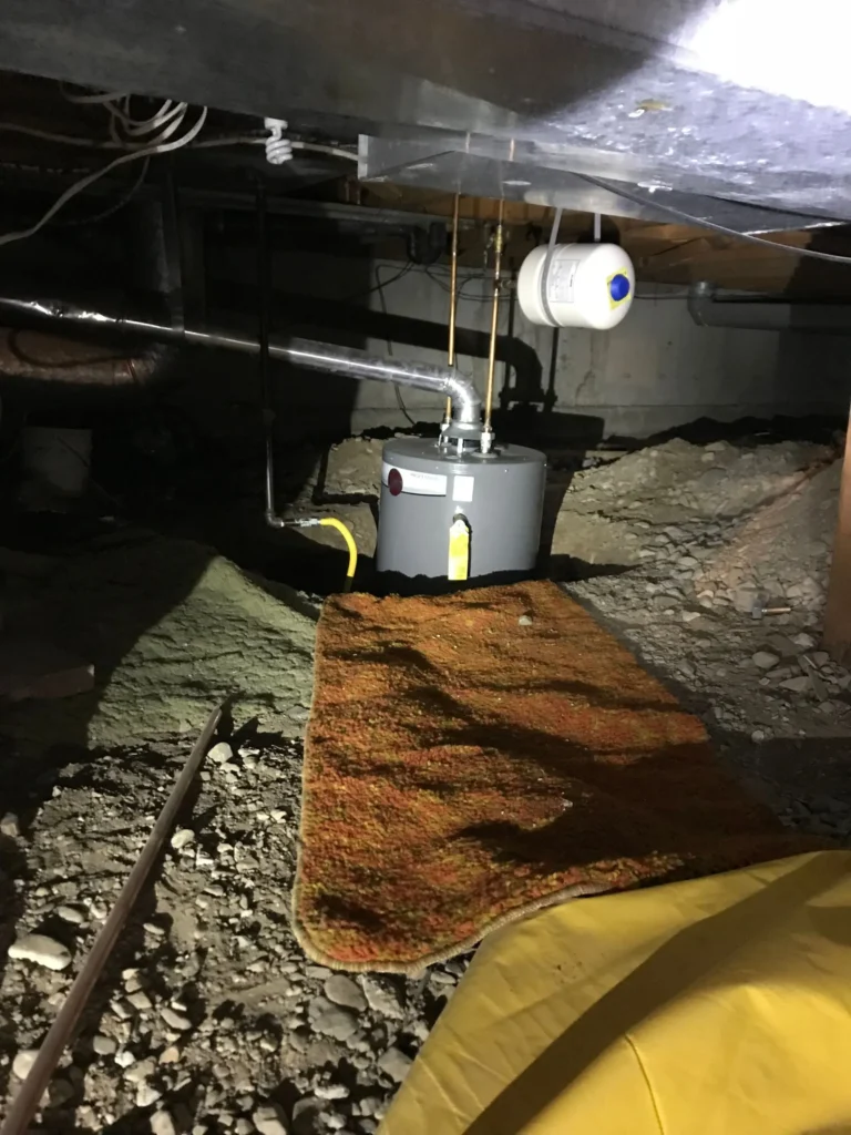 Water heater too tall for crawlspace so they dug a hole. Unsafe for water and gas.