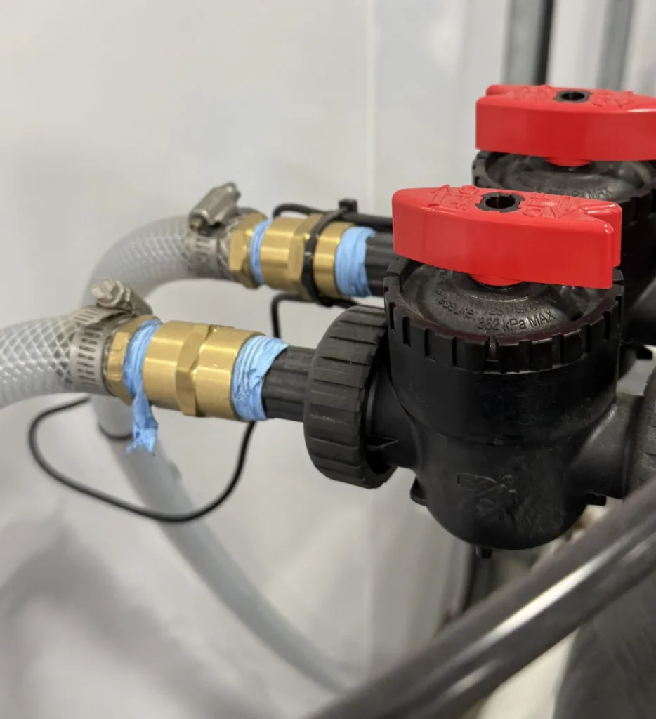 Hose clamps and rubber hose to install a water softener.